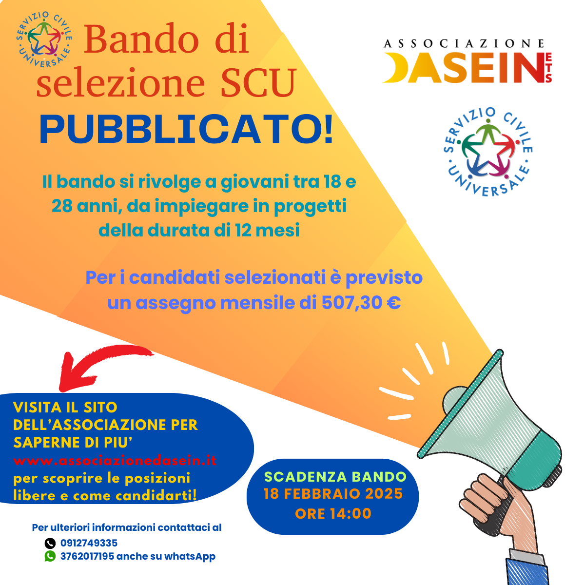 Fino alle ore 14.00 del 18 febbraio 2025 è possibile presentare domanda di partecipazione ad uno dei progetti che si realizzeranno tra il 2025 e il 2026 su tutto il territorio nazionale e all’estero.
